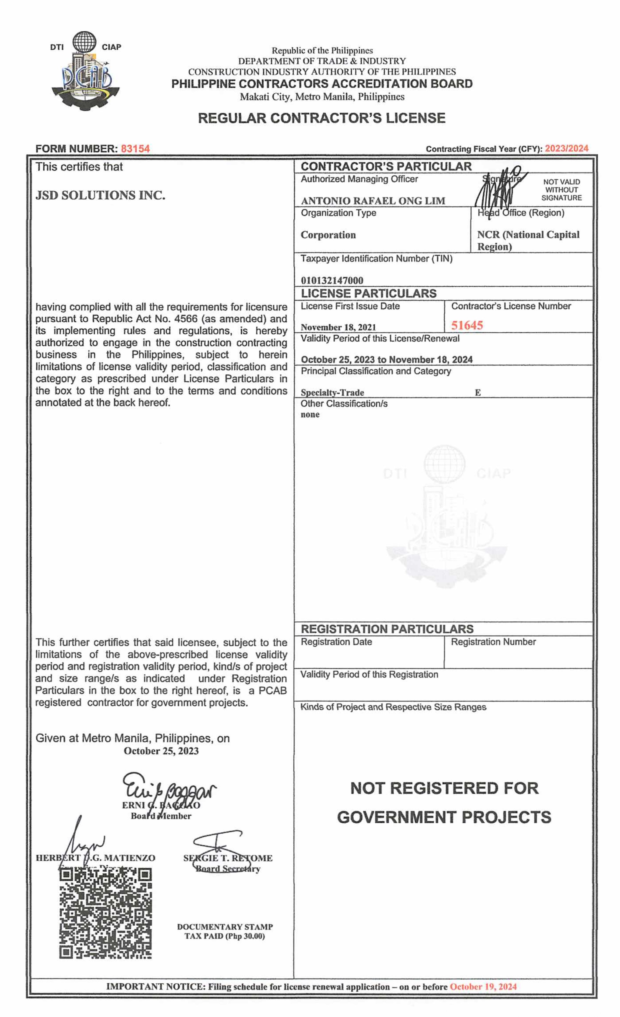 to our services, and thus became JSD Solutions, Inc. (JSD).